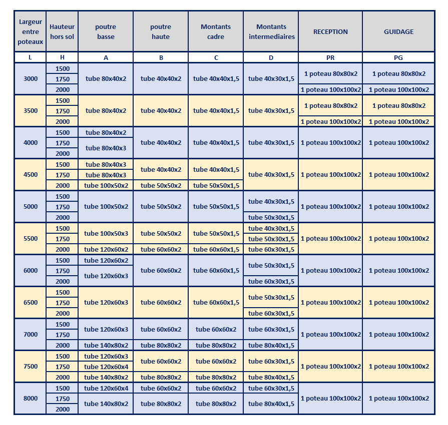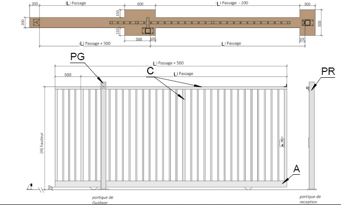 • 2 poteaux à sceller ou sur platines (dimension suivant descriptif)