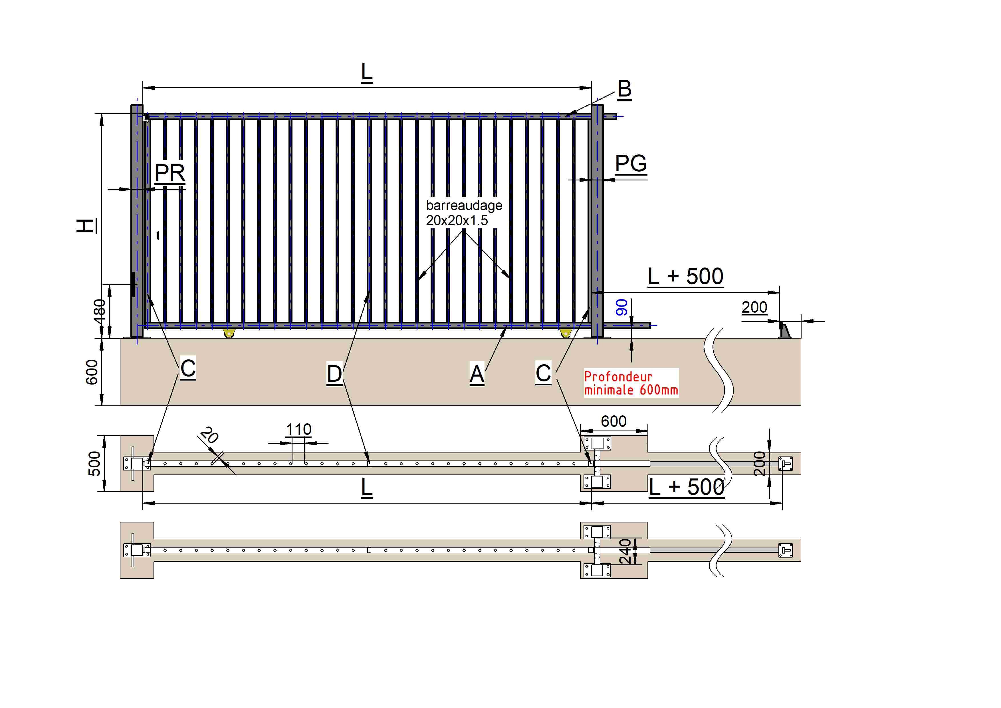 Portail coulissant manuel de la série A par Ferex offre une solution robuste pour votre projet. Équipé de composants de haute qualité, il permet un choix de remplissage du portail.