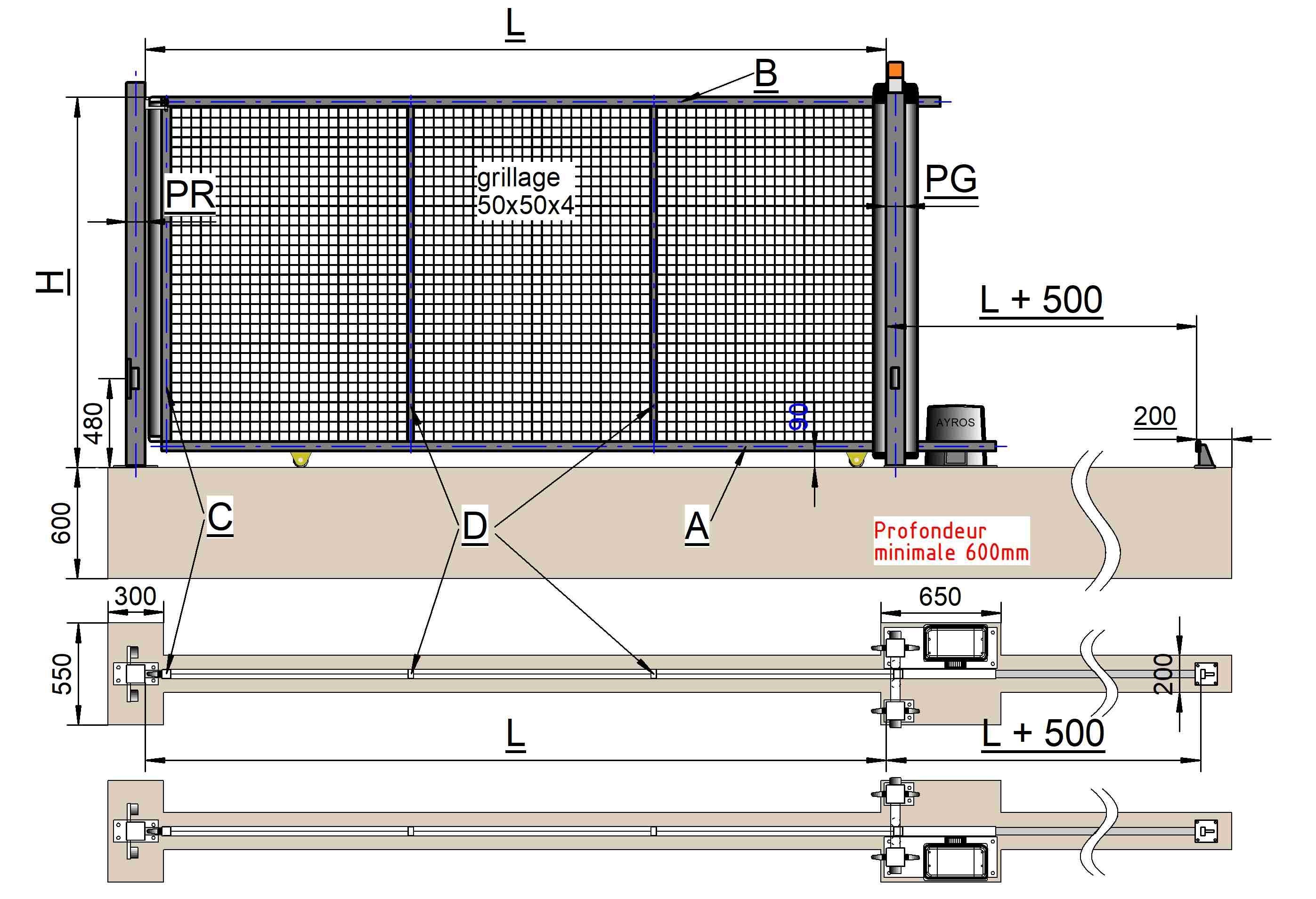 • 2 poteaux à sceller ou sur platines (dimension suivant descriptif)