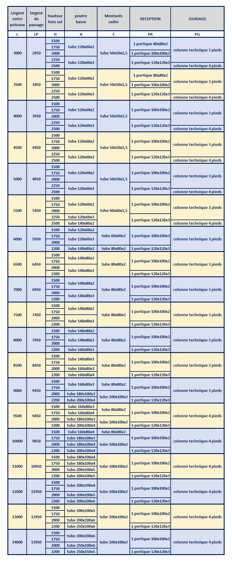 Tableau des spécifications techniques pour Coulissant MONOBLOC - SERIE C