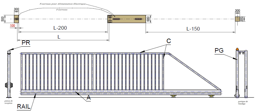 • 2 poteaux à sceller ou sur platines (dimension suivant descriptif)
